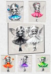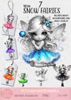 Stunning Christmas snow fairies 7 fairies, monochrome with neon dresses, 5 backgrounds, 1 snow overlay.. Sublimation, print. 13. PNGs All fairies are black and white but with coloured dresses, apart from the black and white versions.