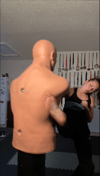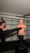 Continuous, non-stop 2 minute sparring round with MULTIPLE angles, plenty of kicks, punches, loud yells & intensity.