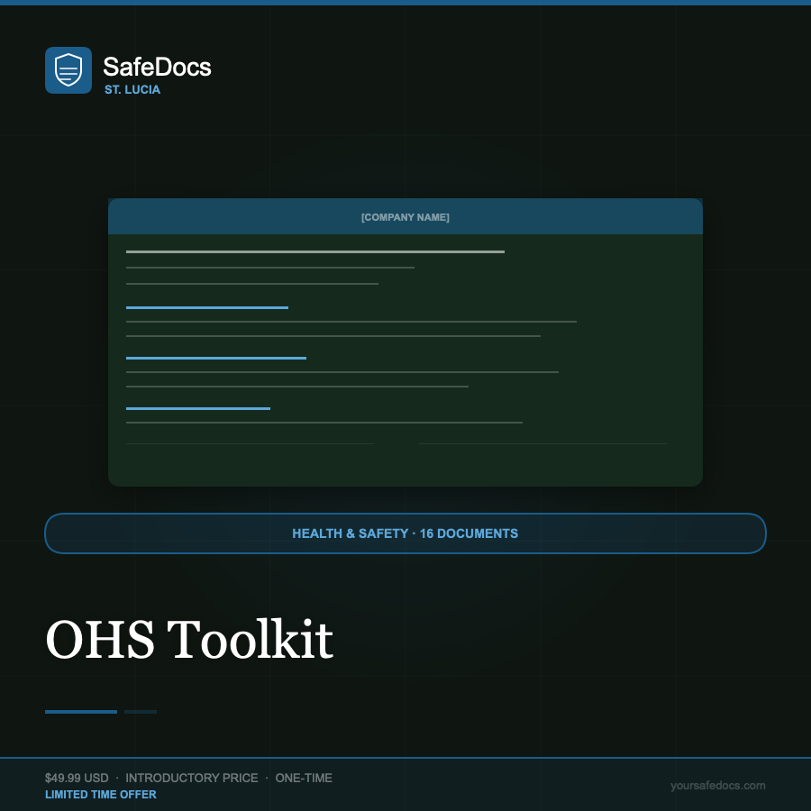 Who is this for? Any St. Lucia business with employees, contractors, or customers on site. Whether you operate in hospitality, construction, retail, healthcare, manufacturing, or professional services, if people come to your premises, you have OHS obligations. This toolkit helps you meet them without needing to start from scratch or hire a consultant for every document.