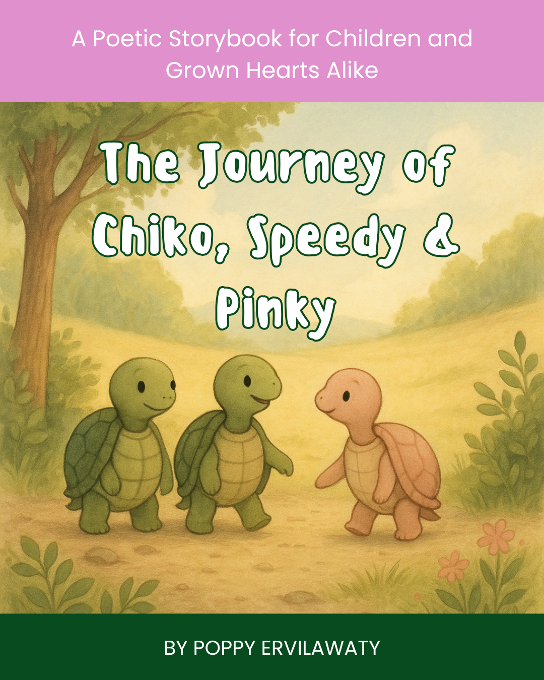 Step into a gentle world where three turtle friends, Chiko, Speedy, and Pinky, set off on a journey of wonder, courage, and heart. In ten beautifully told chapters, each paired with lyrical poems and quiet reflections, this storybook explores the deeper lessons of life: how to be brave, how to slow down, how to dream big, how to say goodbye, and how to come home to yourself.