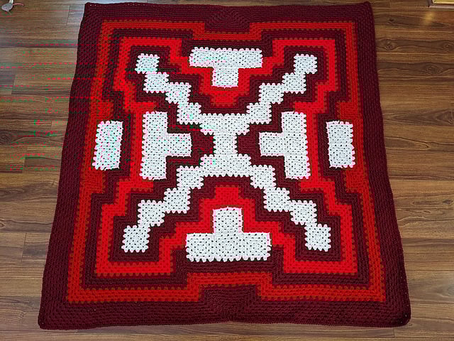 Your finished blanket will measure approximately 11.4 x 11.8 times bigger than a 4-round granny square.