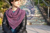Knit with one strand of Malabrigo Sock and another of Malabrigo Silkpaca held together, the Moraga Cowl first starts like a traditional triangular shawl with a garter tab CO. After a few repeats of a simple lace and garter pattern, the cowl is joined in the round. The pattern comes with video and photo instructions for this joining section. The natural point of the cowl is maintained in the round until all sts are bound off.