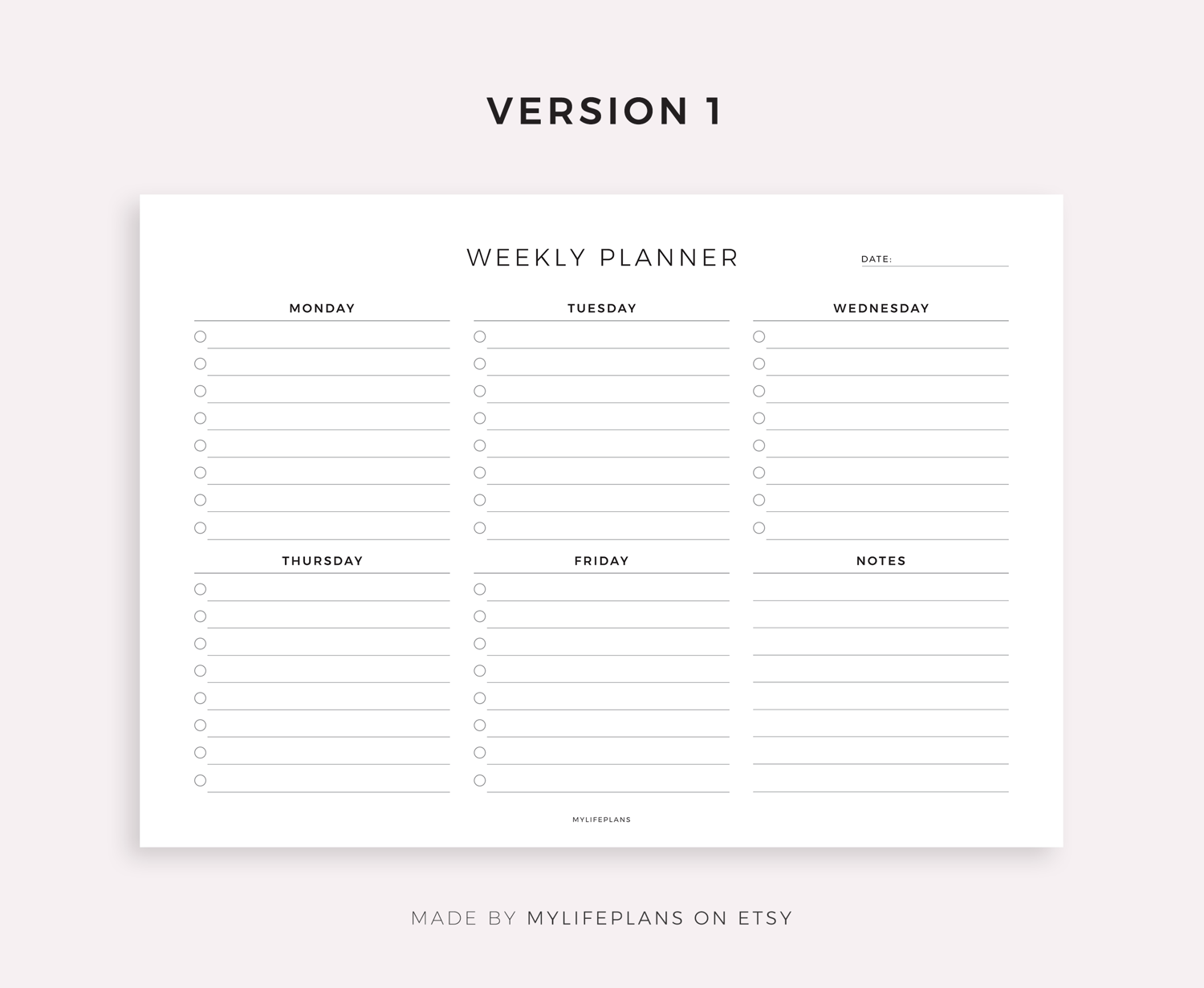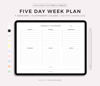 Five Day Weekly Planner, Landscape, Compatible with Goodnotes, Notability, Ipad