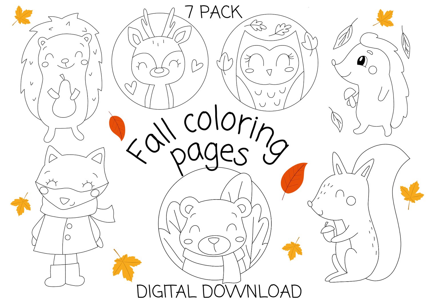 DIGITAL DOWNLOAD -Fall Coloring Pages - (7) Pack Printables
