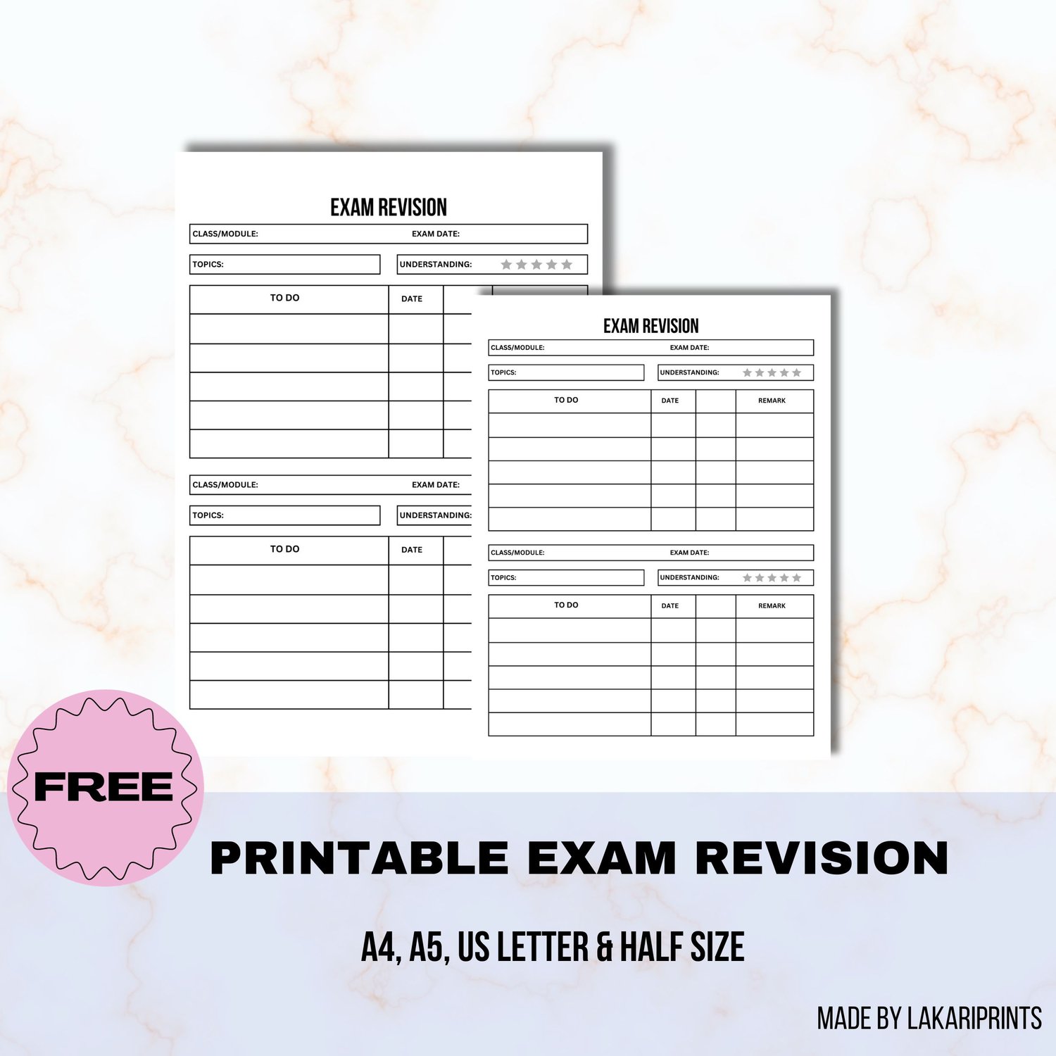 FREE Exam Revision Printable Tracker, Student Exam Revision Template, Exam Study Checklist Revision Printable Tracker