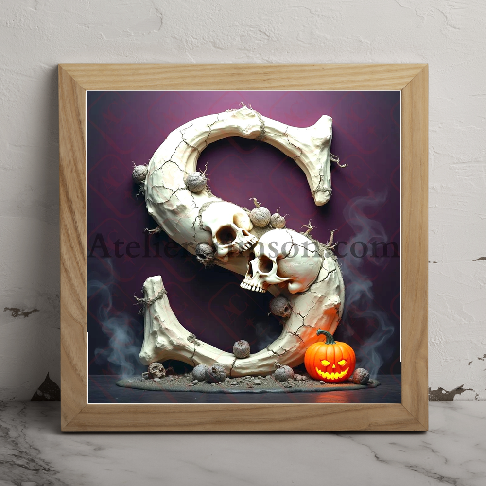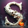 The letter S spooky character skull Halloween Discover our Spooky Skull Alphabet! Each character is a 3D masterpiece of bone and shadow. Perfect for Halloween designs, gothic projects, or unique wall art. 💀✨ Click to download this high-resolution character and elevate your creations with haunting elegance!