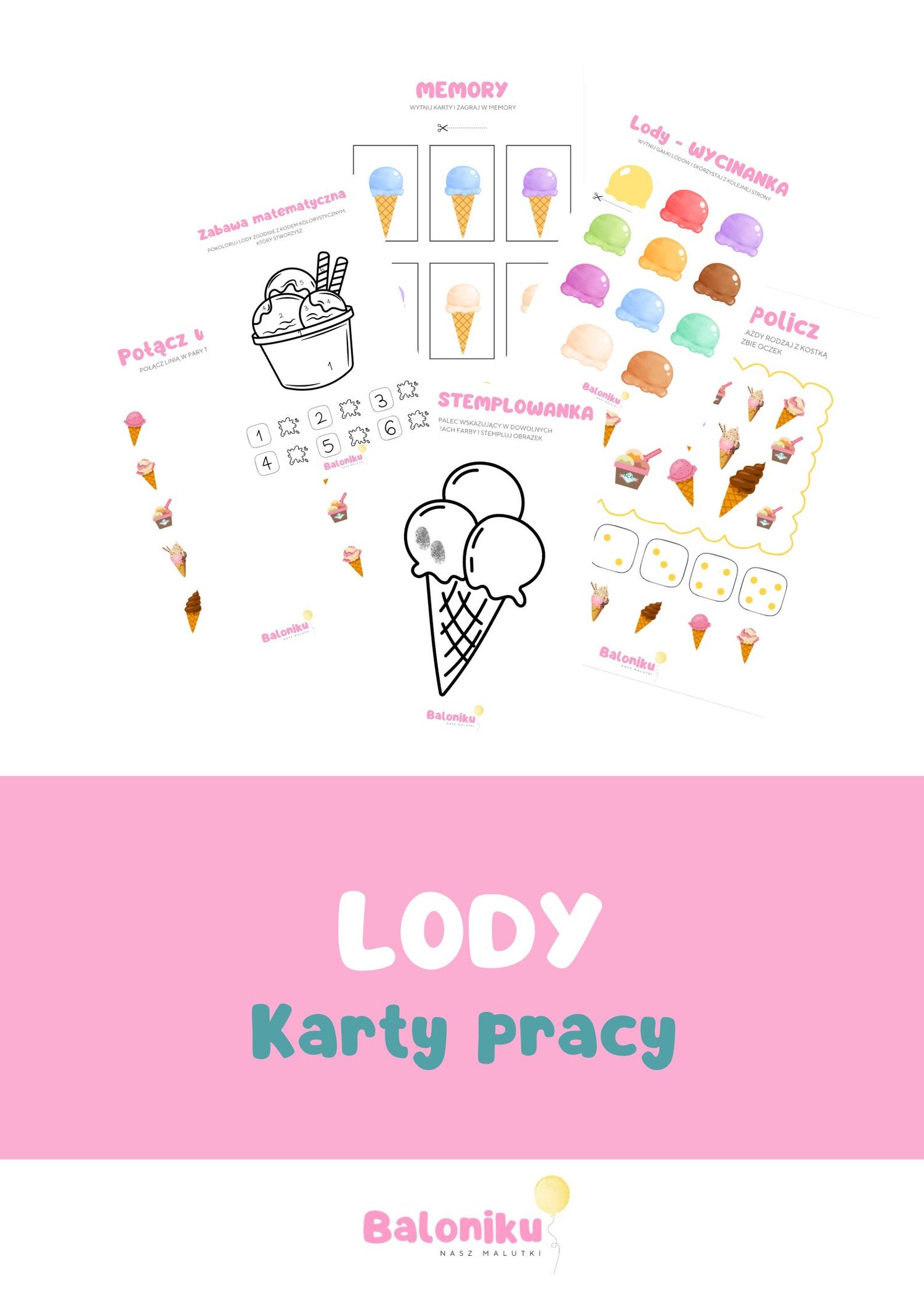 LODY - karty pracy dla Dzieci w wieku przedszkolnym umilą Wam wspólnie spędzony czas w wakacje! Znajdziesz w nich zabawę matematyczną, wycinankę, grę memory i karty rozwijające spostrzegawczość. Wszystko w kolorowej i czytelnej szacie graficznej, atrakcyjnej dla Dzieci!