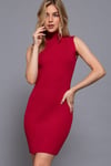Sleeveless Mock Neck Fitted Mini Dress,