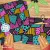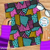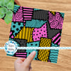 Sally ragdoll patchwork with yellow, turquoise and pink patches.
