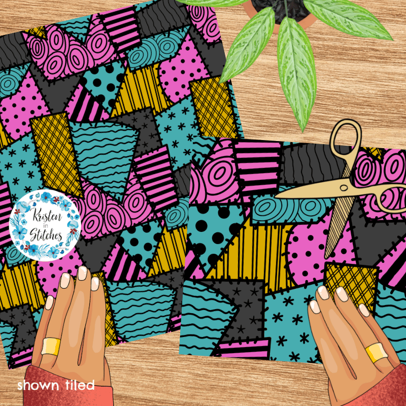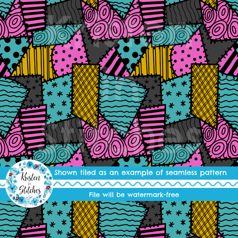 Sally Ragdoll Patchwork Costume Seamless Pattern