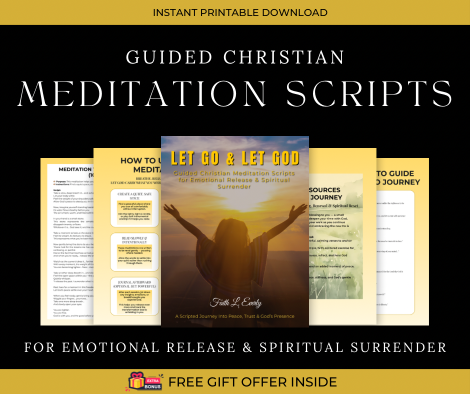 These guided Christian meditation scripts help you release what’s weighing on your heart, reconnect deeply with God’s presence, and rise into emotional freedom — one Spirit-led moment at a time.
