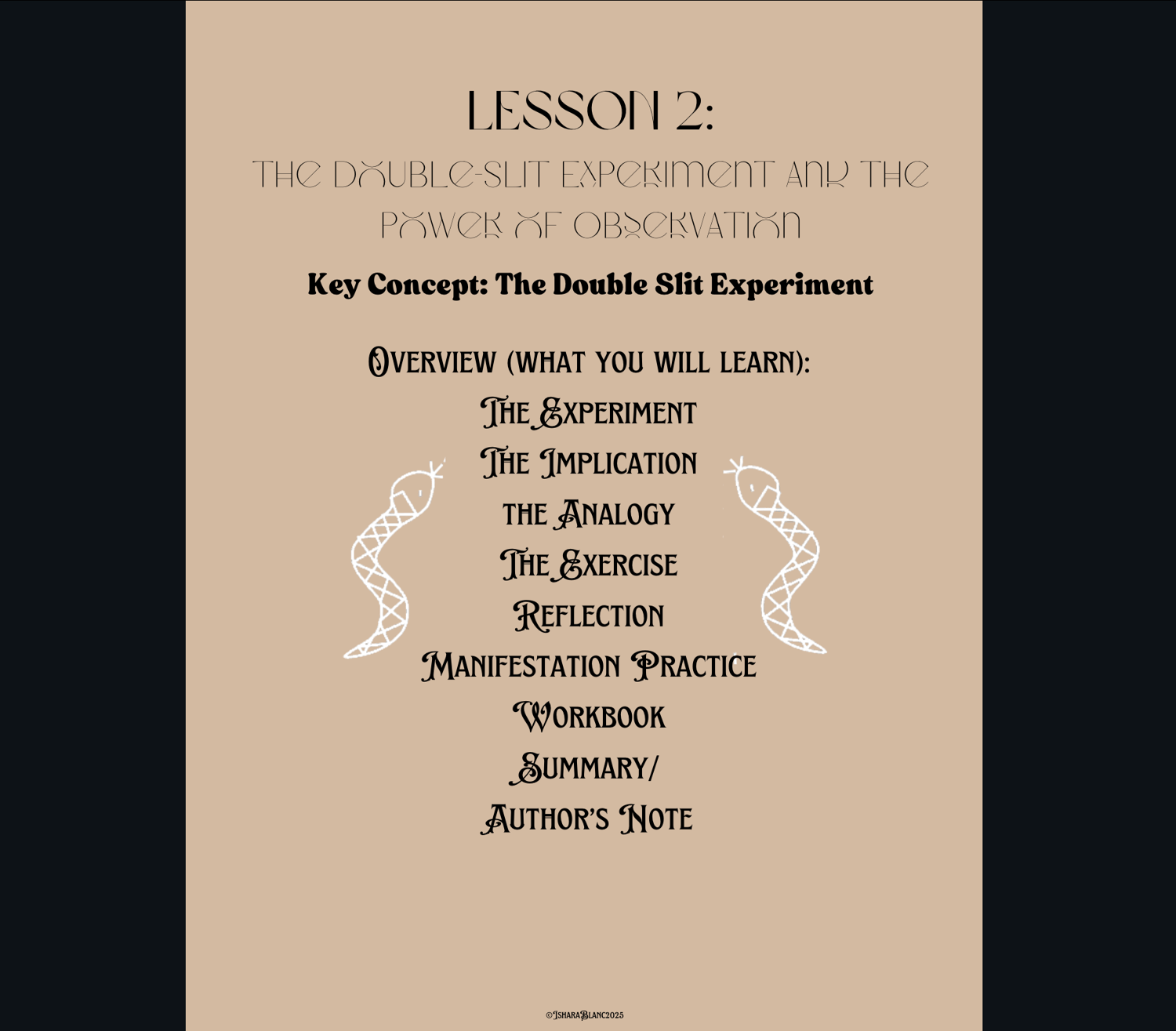 This 42-page workbook blends real quantum mechanics, energetic principles, and practical reflection to help you understand the invisible laws behind everything you create. You’ll learn: