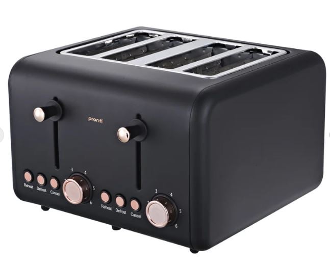 Pronti 4 Slice Toaster Rose Trim Collection - Black 3.1 kg