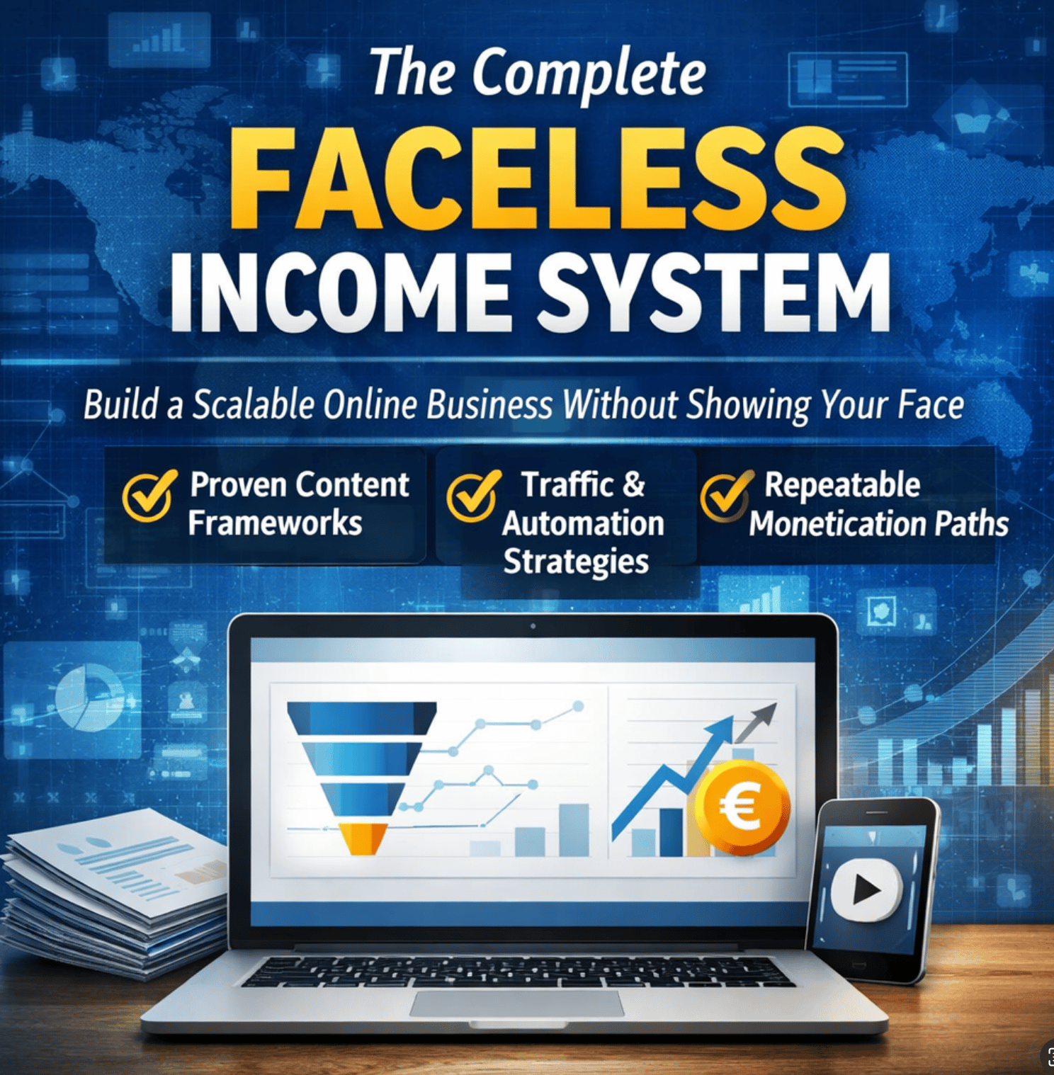 The complete step-by-step structure for building profitable faceless digital income — without followers, ads, or showing your face.