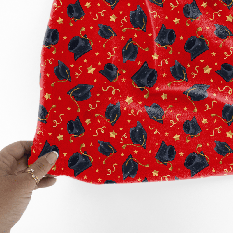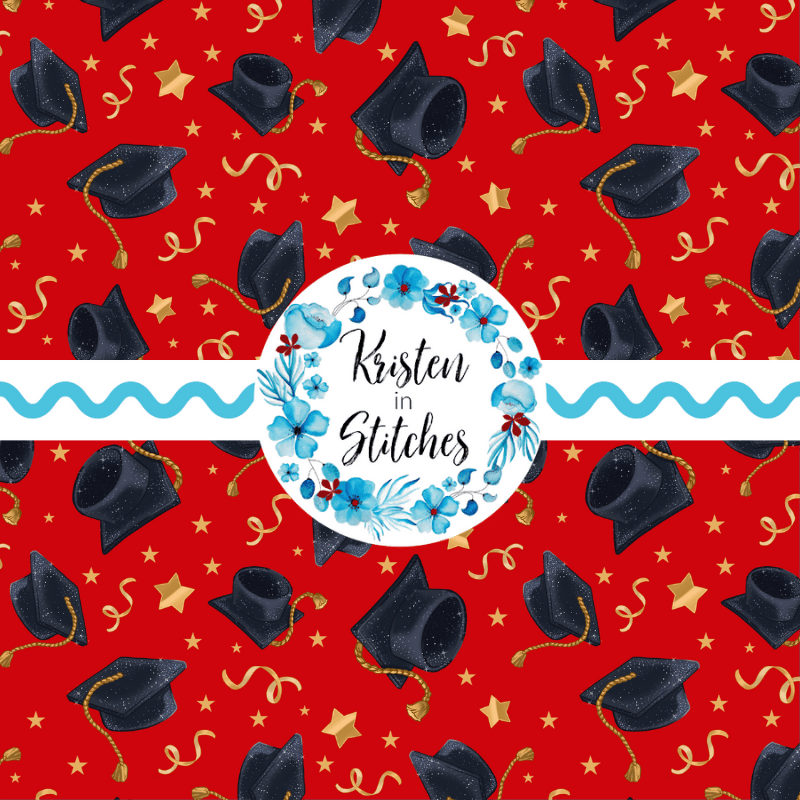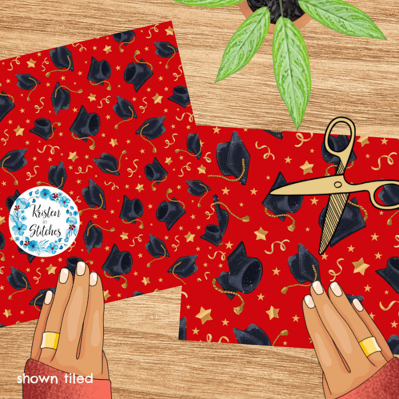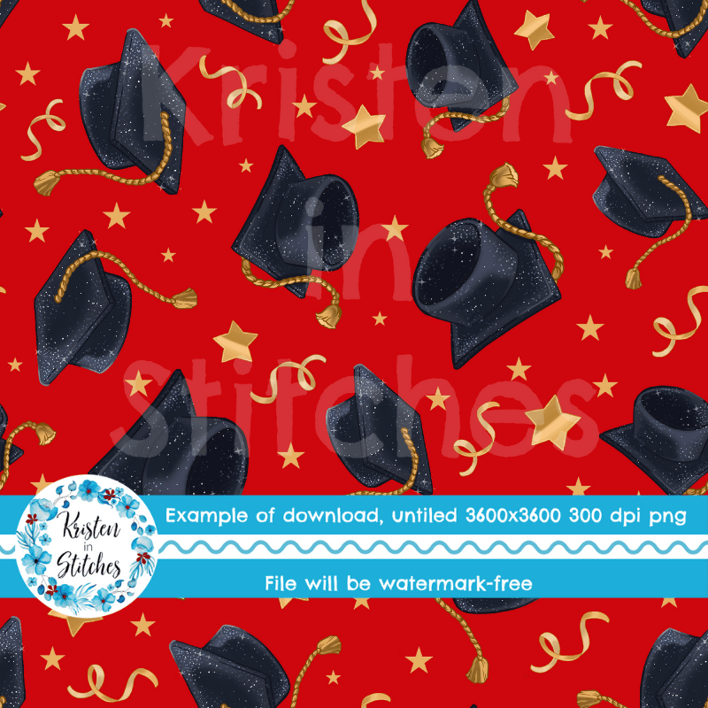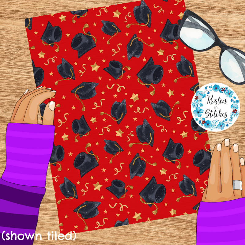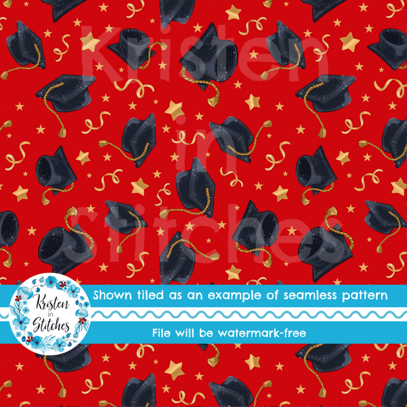 Graduation Grad Caps and Tassels Seamless Pattern, Red