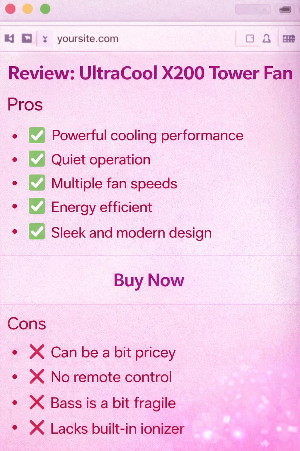 - β Include detailed pros & cons, review sections, and recommendations