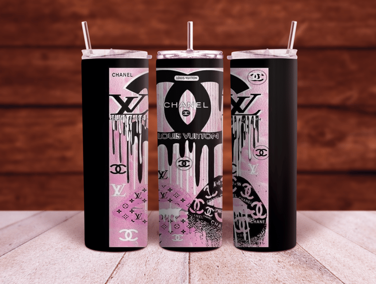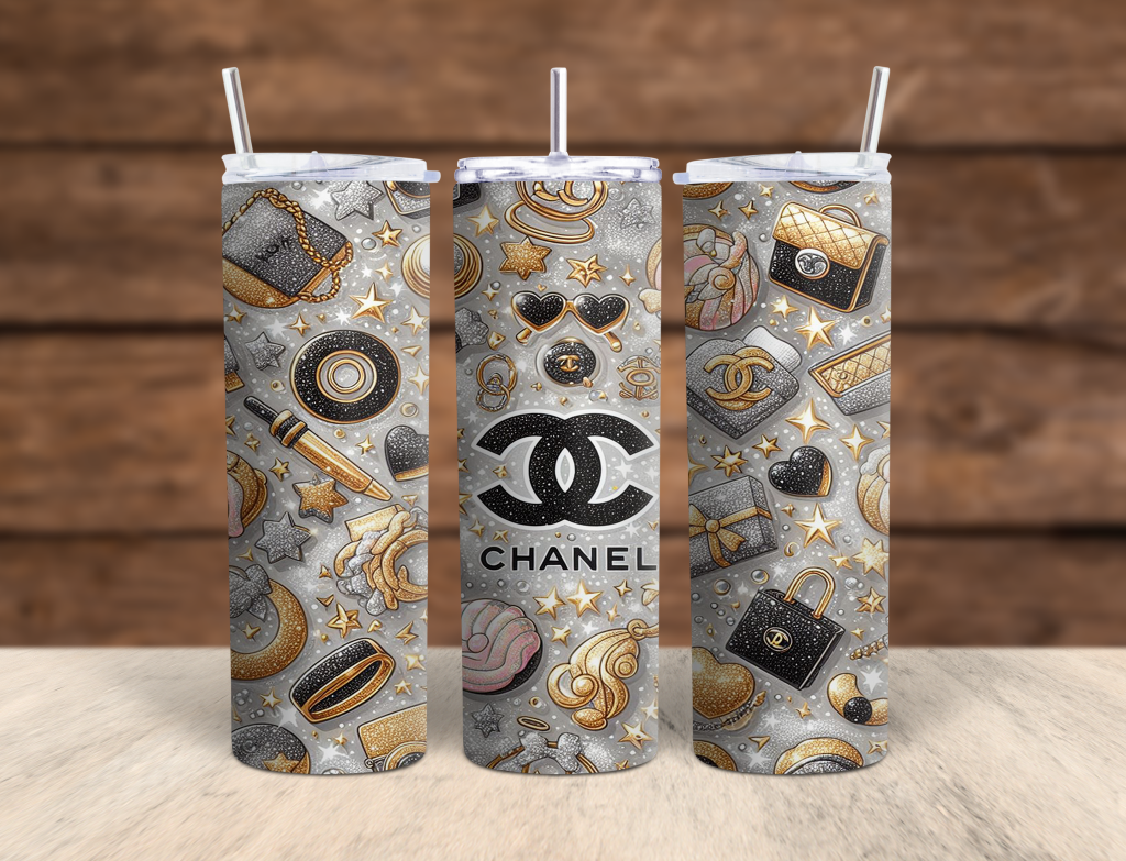 Chanel Gold Silver 20oz and 30oz Sublimation Tumbler Wrap PNG