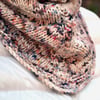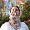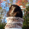 When your exhale turns white as it escapes your lips, the sign foretells of frosty climes and the time to don your Snow Gazer cowl. With a radar like shape reaching straight to your heart, your whole neck and chest stay comfy cozy. The unique detail in back adds structure to keep the cowl standing up tall. Knitting with bulky yarn completes this design before the first snowflakes cumulate upon the ground outside your window.