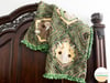 GAUGE: 15 dc X 8 rows = 4” X 4” (10 X 10 cm), working with a 5 mm (H) hook.