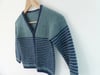 Il est en revanche un peu différent du premier : il est toujours en rayures mais en jersey endroit, et se tricote du haut vers le bas, toujours sans couture. Il est taillé plus fin que les gilets garçon classiques pour une allure chic et actuelle.