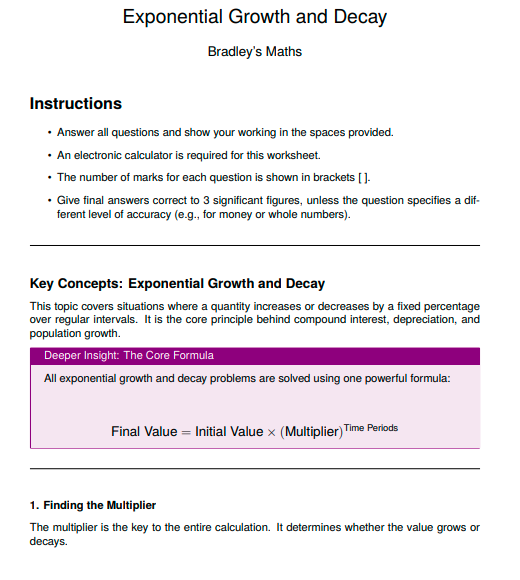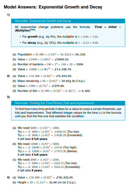 IGCSE Higher Maths: Exponential Growth and Decay (Worksheet & Model Answers)