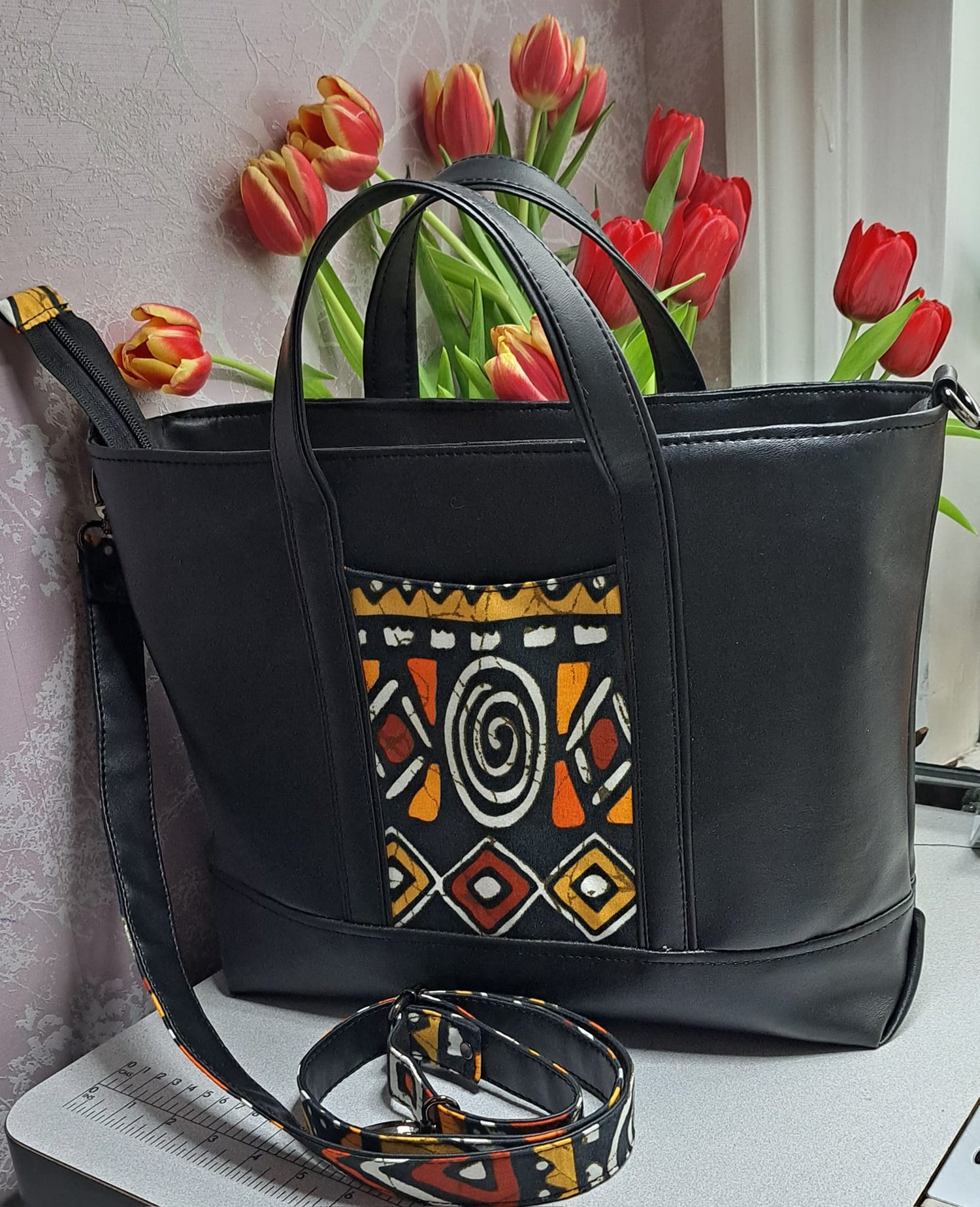 For domestic machine users, this bag has 4 -6 layers in several spots. Please test your machine to see if it can handle this before deciding on your fabrics. You may need to make the whole bag in cotton if your machine cannot handle the layers.