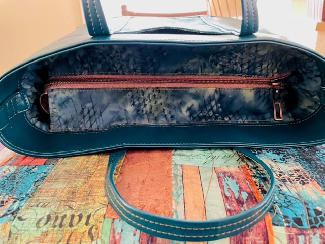 This advanced-beginner pattern is designed to be domestic friendly with alternative methods for most sewing machines that cannot go through 4 or more layers of fabrics like vinyl or cork. Instructions are very detailed and have many photos to guide you through construction. And I developed a new, easier way to construct a recessed zipper placket! And strap connectors are kept out of the final topstitching! Don’t we all love that???