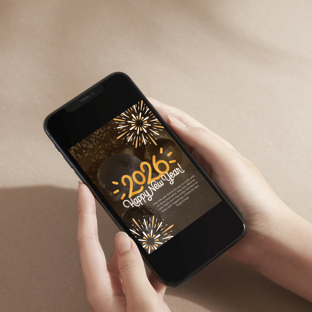 This yellow and white design sparkles with a festive touch, featuring fireworks, elegant lettering, and a joyful celebration theme—perfect for sharing your best New Year messages with friends, family, coworkers, or social media followers.
