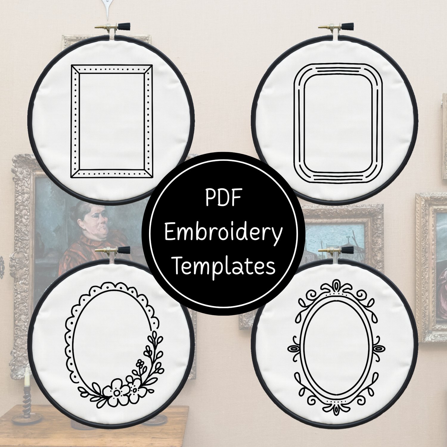 Gallery Wall Frames - 8 Different Designs Hand Embroidery Template - Instant Download