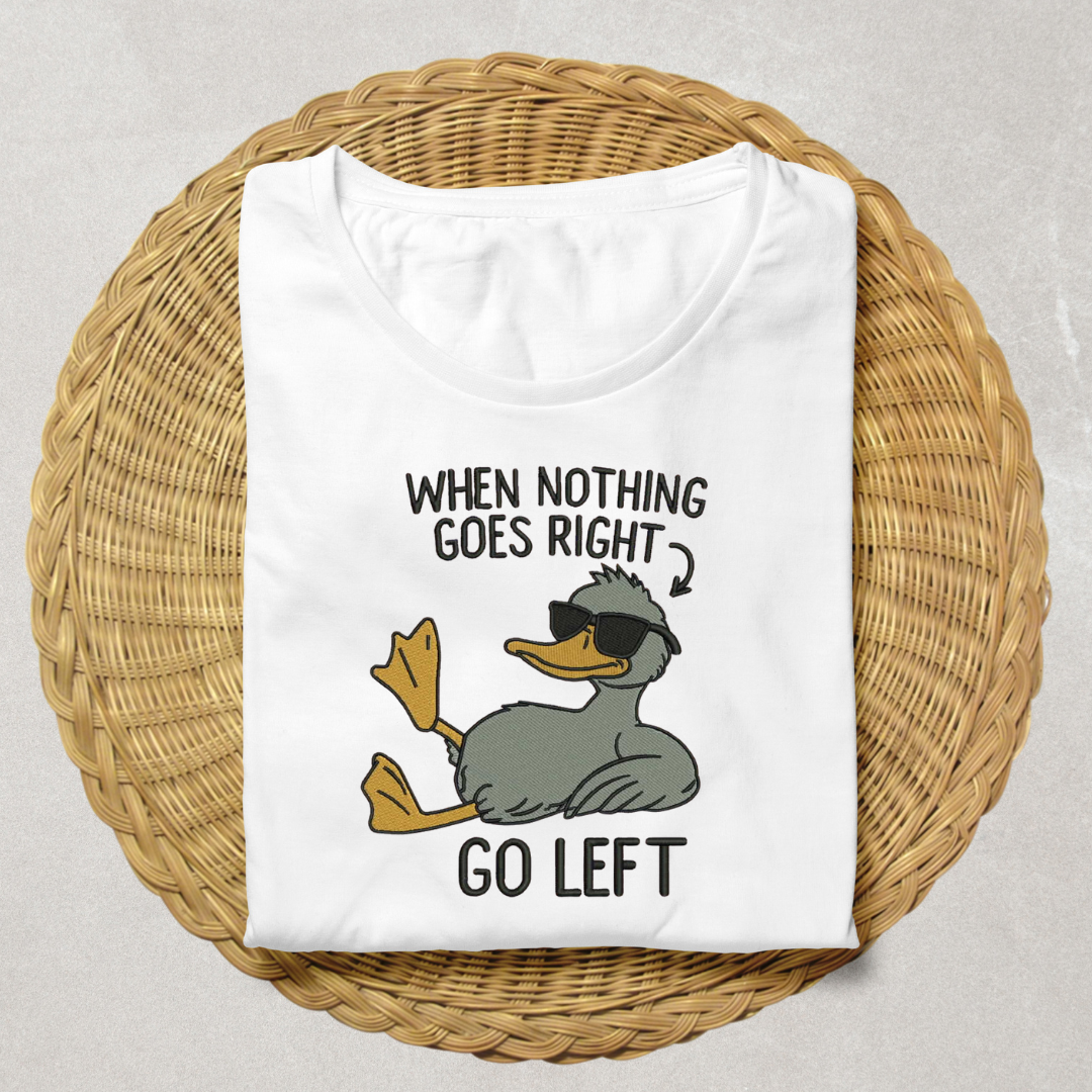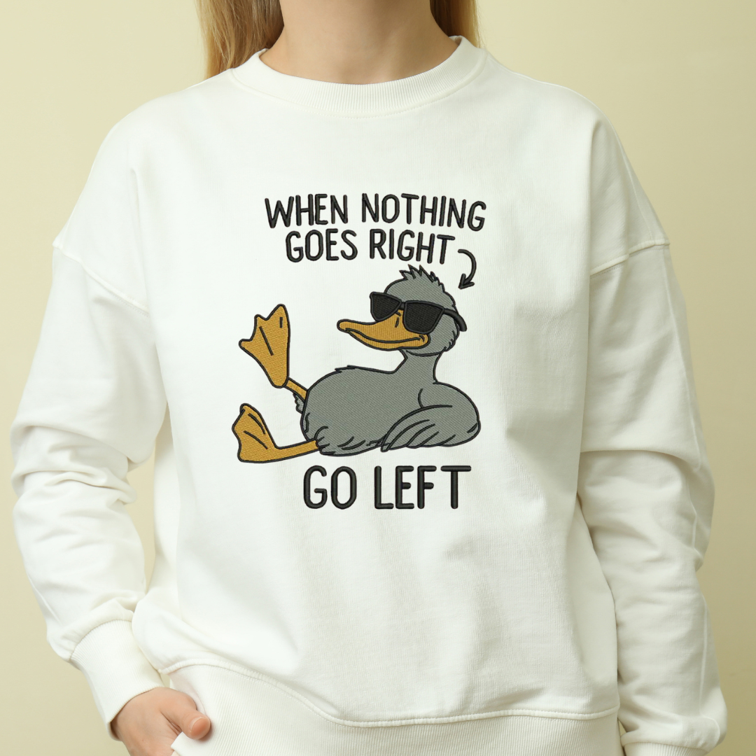 Funny Duck Embroidery Design β When Nothing Goes Right Go Left β Cool Animal Quote Pattern ( Digital Download )