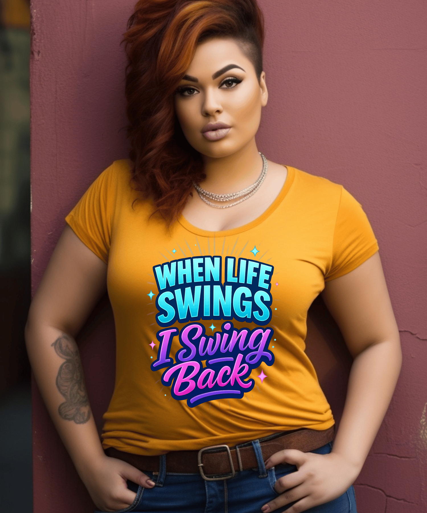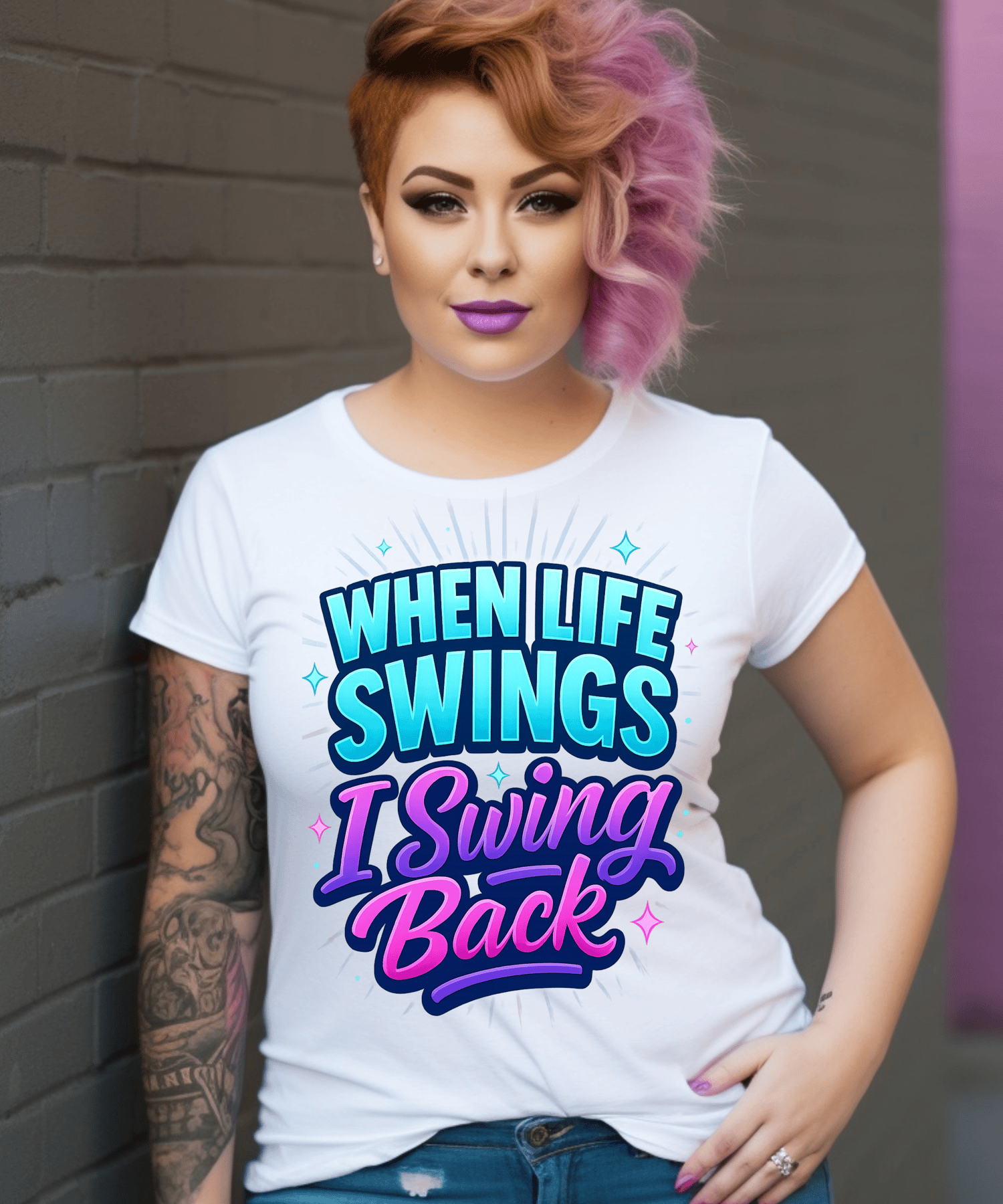 Bounce back with boldness! This vibrant “When Life Swings, I Swing Back” design is perfect for anyone who knows how to fight back with style. The high-energy color blend and empowering message make it ideal for tees, tumblers, journals, and more.