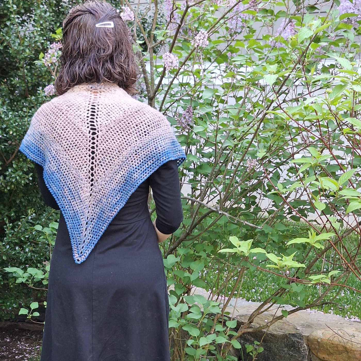This crochet shawl is worked from the center neck out and down to the point in Artyarns Merino Cloud.