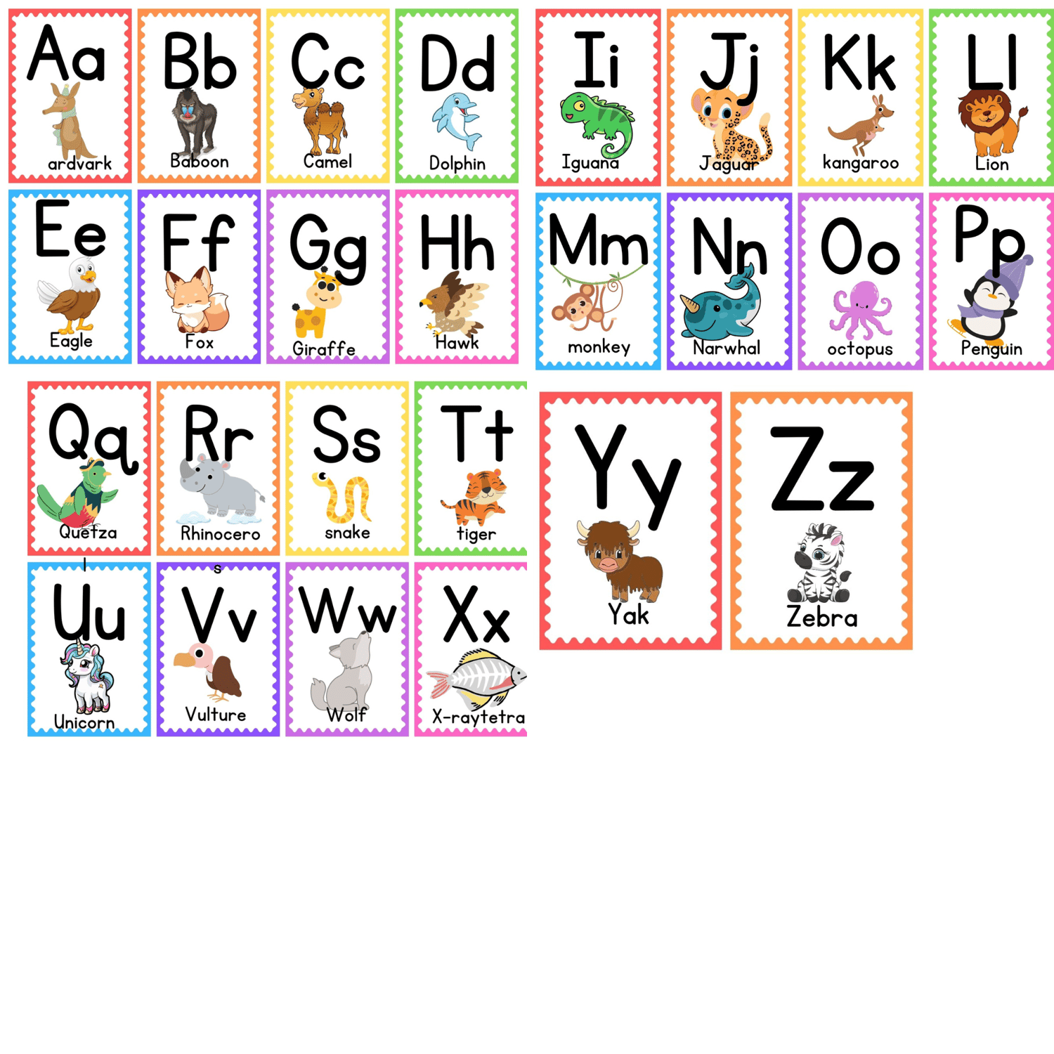 Embark on a fun-filled animal adventure with this colorful alphabet chart! Each letter is paired with a cute animal to make learning the alphabet exciting and interactive.