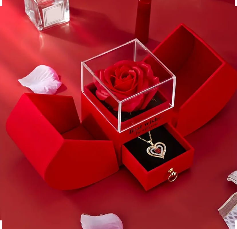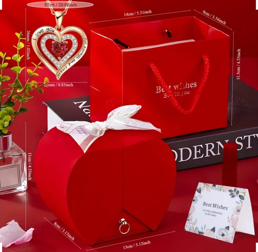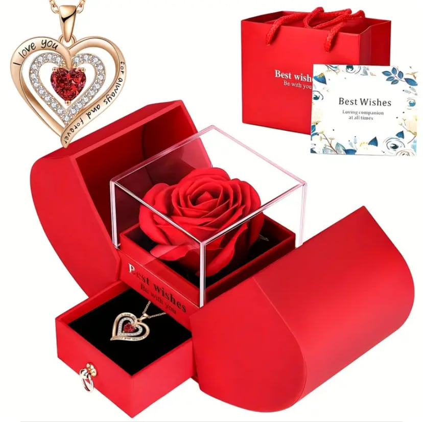 Charming Love Heart Pendant Necklace with Rose Gift Box - Perfect for Valentine's Day, Birthdays, Mother's Day & More - Silvery Plated Zinc Alloy, Perfect for Winter, New Year