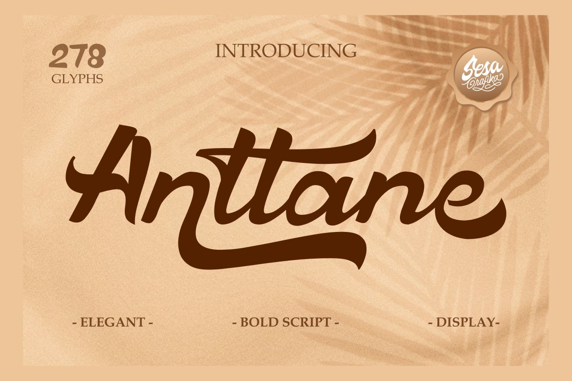 Anttane is a bold and retro script font. Clean and a little bit quirky, this font is the perfect fit for all of your logos, branding, social media, and crafty DIY projects.