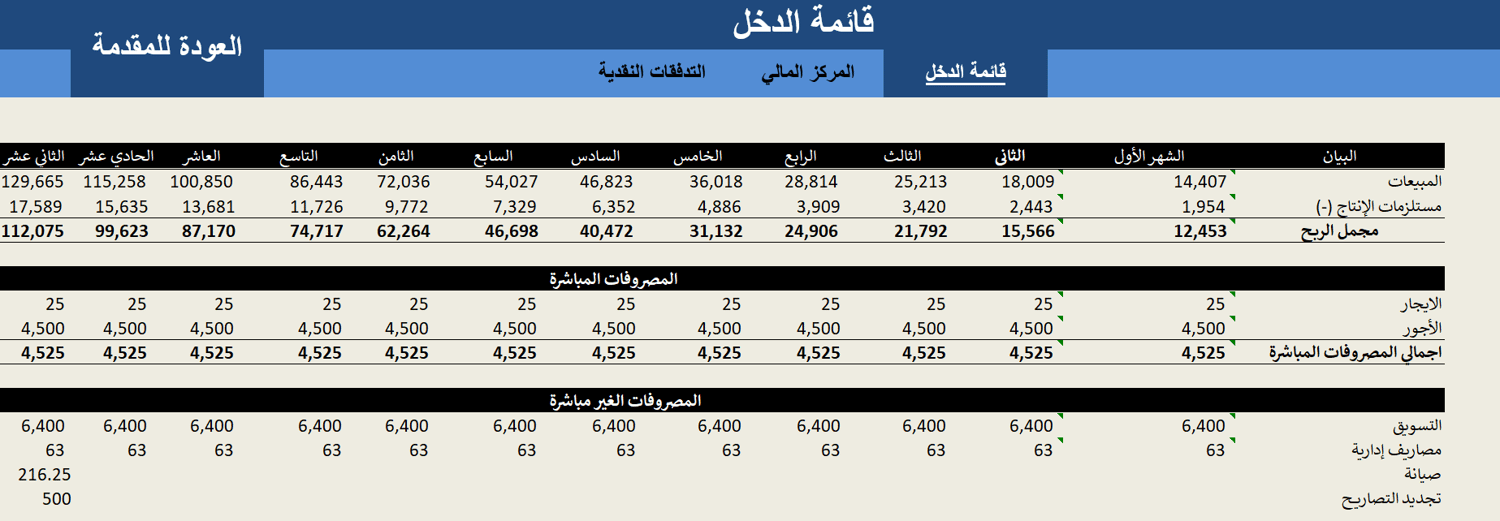 هذا الملف يوفر لك الوقت والجهد في إعداد دراسة مالية احترافية لمشروعك. يمكنك أيضا تخصيص الملف وفقا لاحتياجاتك الخاصة وإضافة المزيد من الوظائف والرسوم البيانية