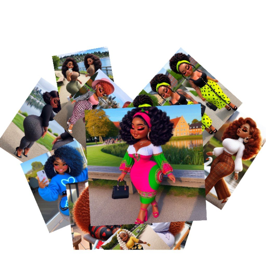 This prompt book contains 20 fashion, curvy Chibi Queens – each one dripping with style, curves, and crown energy.