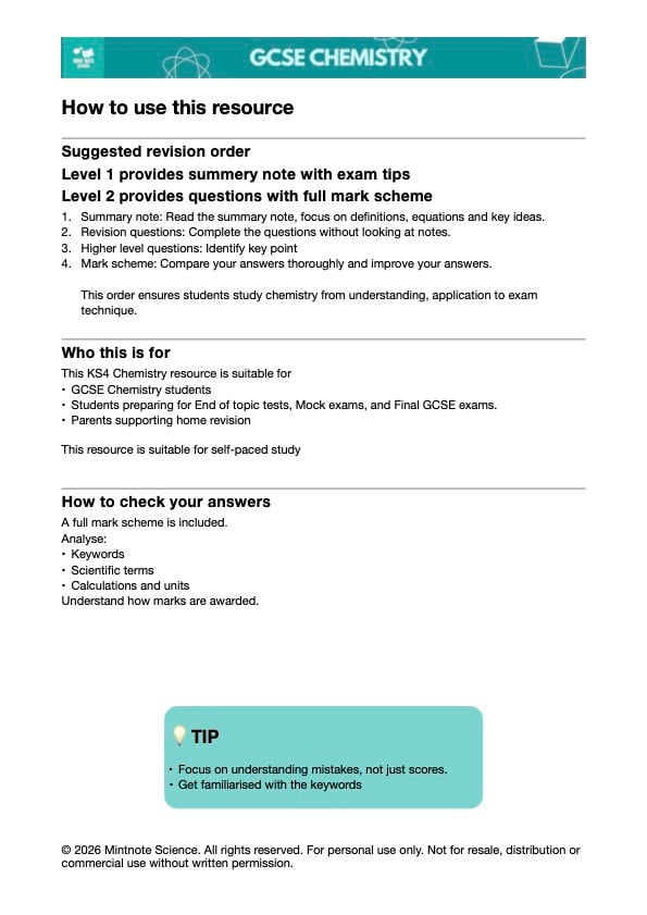 GCSE Chemistry - Complete topic bundle: Summary + Exam practice