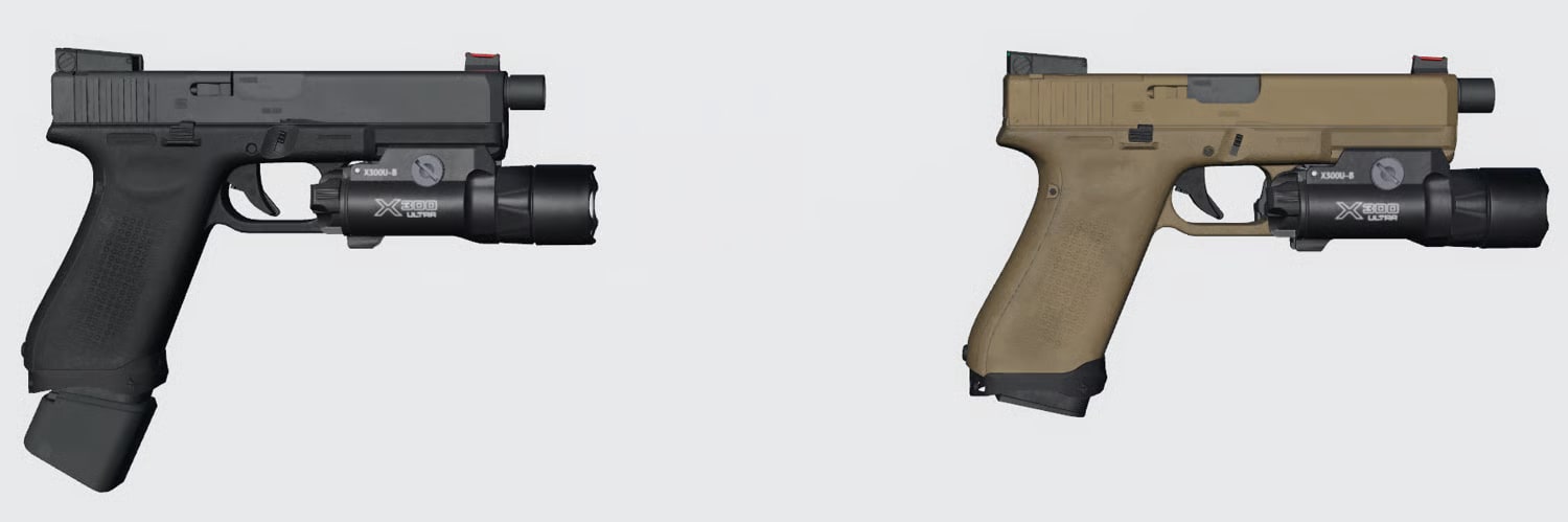 - Visuals: High-detail model with realistic slide/texturing, selectable finishes, and clear iron-sight overlays