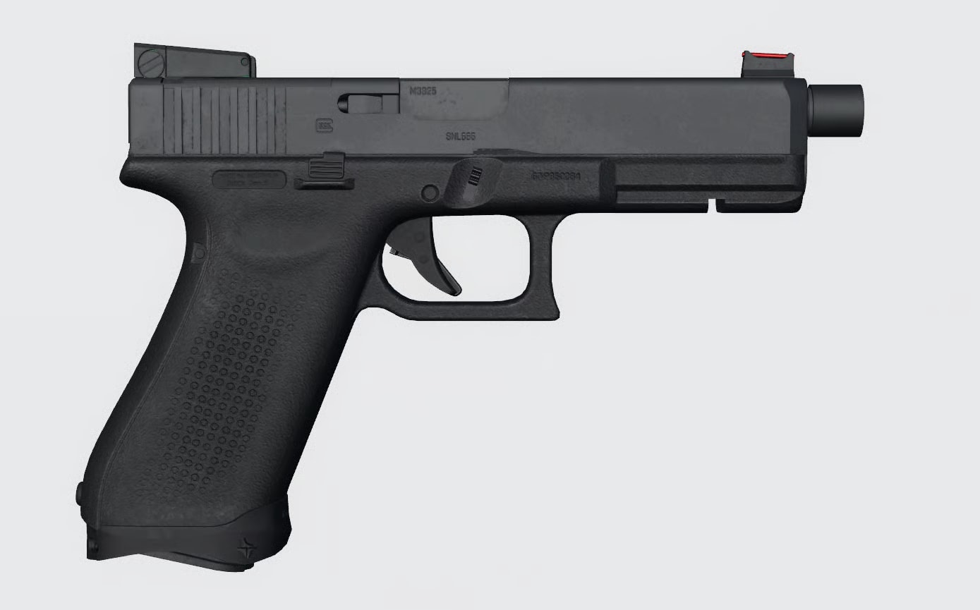 The Glock "G17" Gen 5 is a battle-proven 9mm service pistol favored by militaries, law-enforcement, and professional shooters worldwide. The Gen5 update refines ergonomics and reliability removing finger grooves, adding an ambidextrous slide-stop, and introducing a Match-grade Marksman Barrel making it an ideal sidearm for MILSIM units that value durability, simple operation, and fast follow-up shots. Modeled for Roblox MILSIM, this G17 delivers authentic handling, crisp trigger response, and clean visuals suited to both combat and patrol roles.
