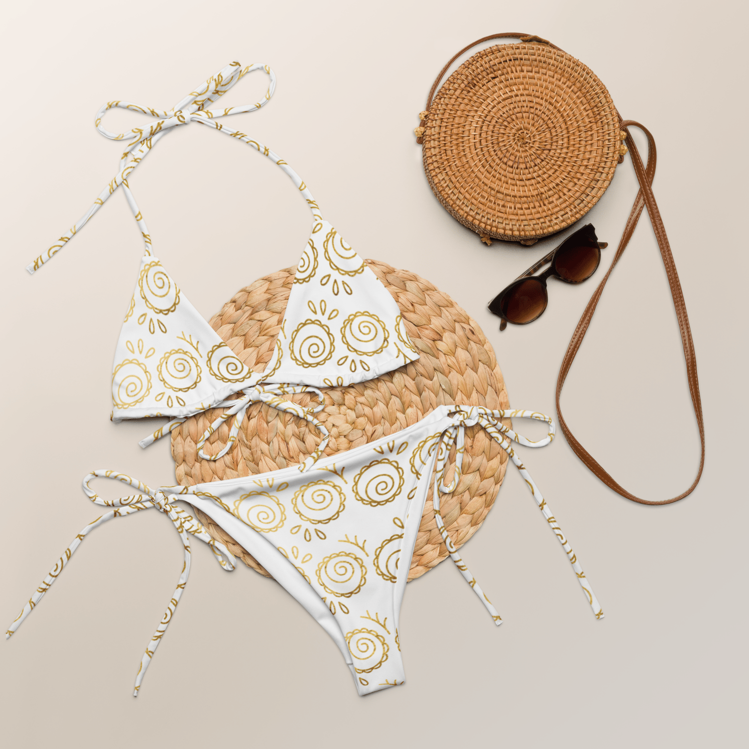 Feeling like you need a major glow-up for your next sun-soaked adventure? Ready to turn heads the moment you step out of the infinity pool? Introducing the Villa Vixen bikini – because darling, you weren't made to blend in. Imagine golden hour hitting just right, illuminating those hypnotic, sun-kissed swirls against a crisp white backdrop. This isn't just swimwear; it's a statement. It's the moment you walk into the villa, and everyone knows exactly who runs the show.