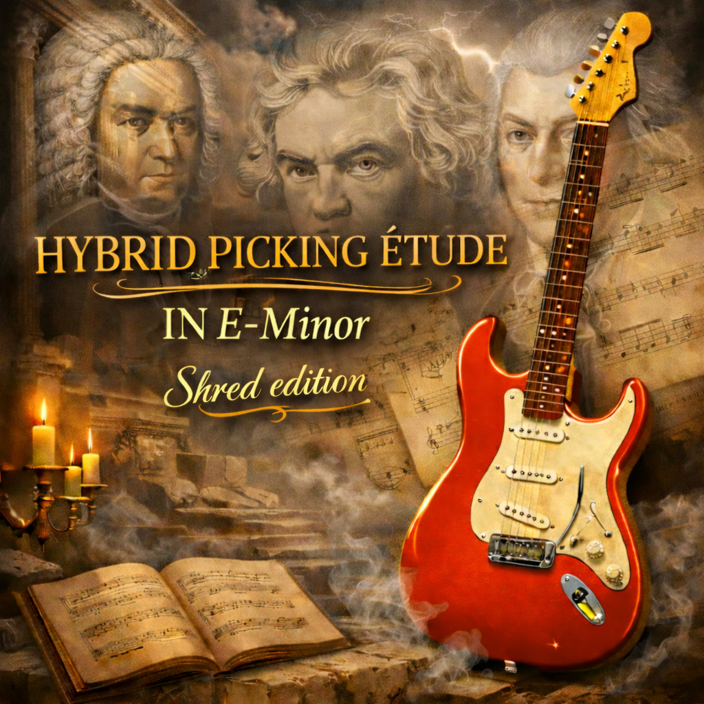 Every serious neoclassical guitarist reaches a point where alternate picking and sweep picking just aren't enough. Hybrid picking is your next step, and this E minor etude is the perfect vehicle to learn it. Drawing heavily from Bach's harmonic language, this progression sounds incredible while training your right hand in ways most players never explore. One more powerful technique in your arsenal, ready to use.
