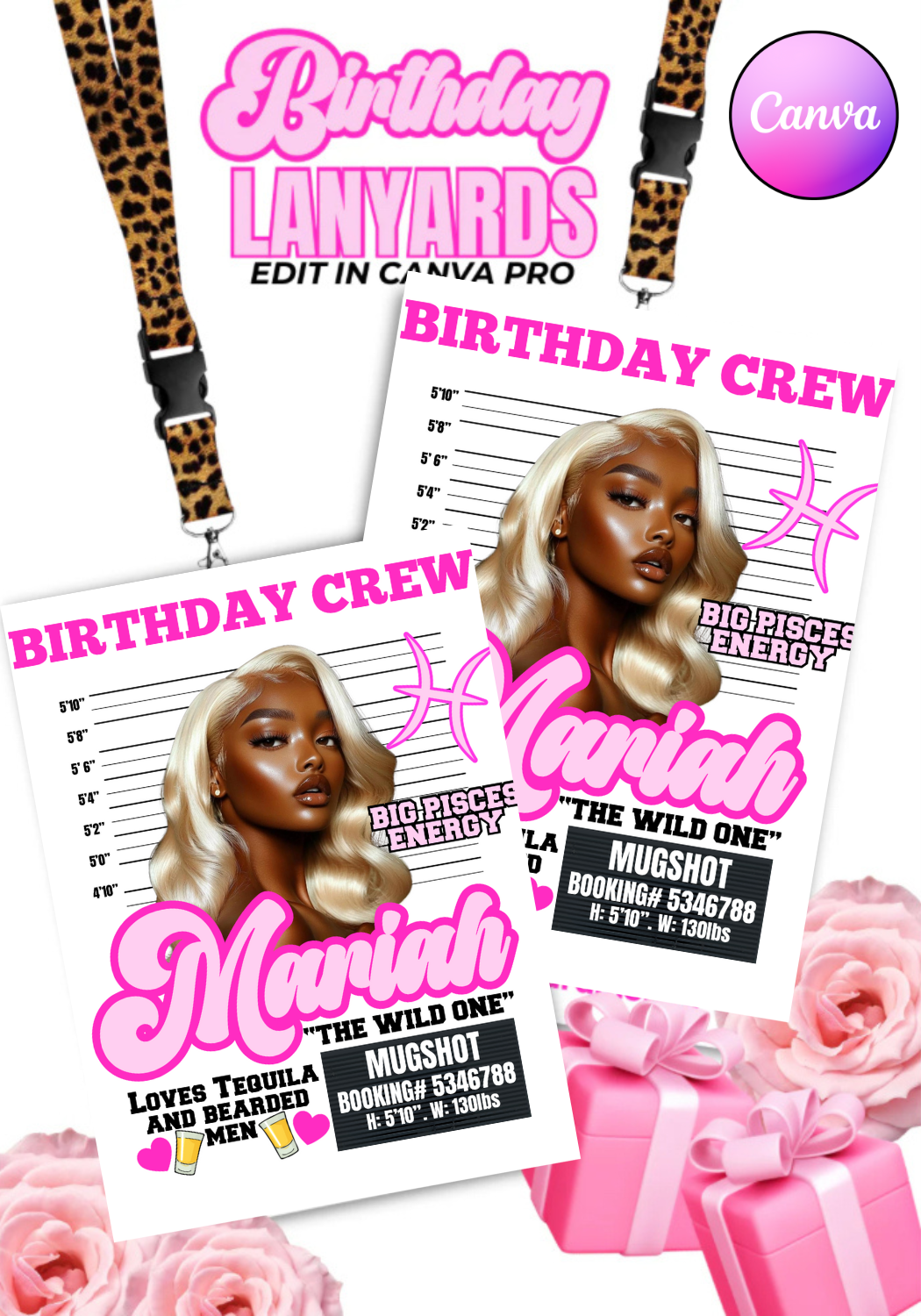 Celebrate in style with this Editable Birthday Lanyard Template, perfect for custom birthday badges, VIP passes, or keepsake party favors! Sized at 3.5x5”, this versatile template is fully editable in Canva Pro, allowing you to easily add your own photo, name, age, date, text, and custom design elements.