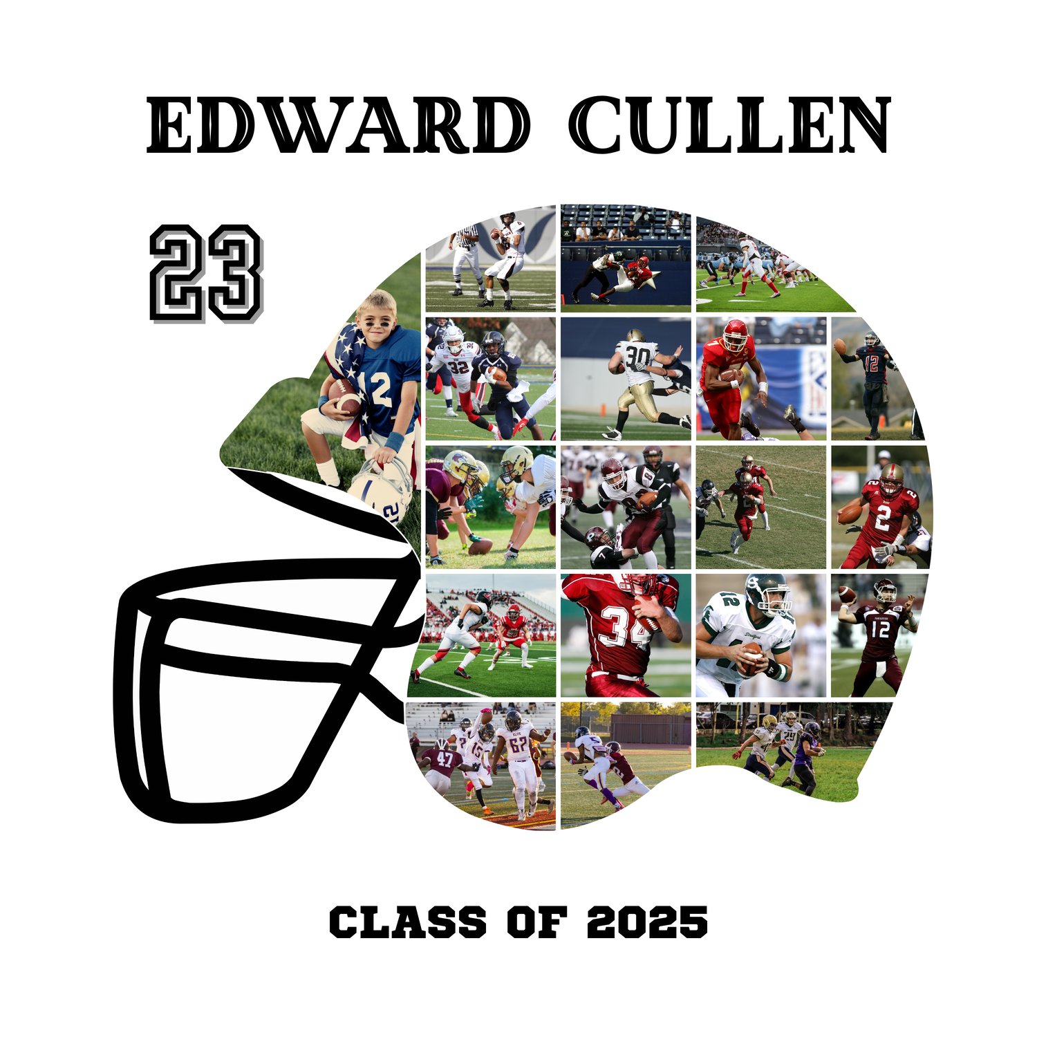 Show off your favorite game-day memories with this Football Helmet Photo Collage Template! Designed in the shape of a classic football helmet, this digital collage is perfect for displaying your sports photos, team highlights, or personal achievements on and off the field.