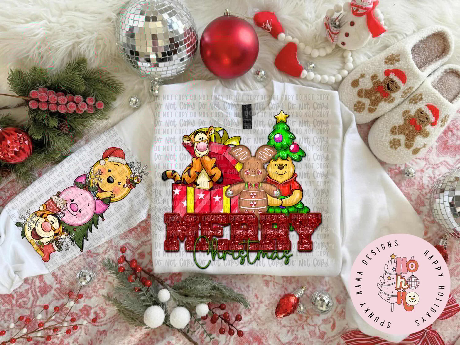 Winnie The Pooh Merry Christmas Digital PNG Design With Sleeve