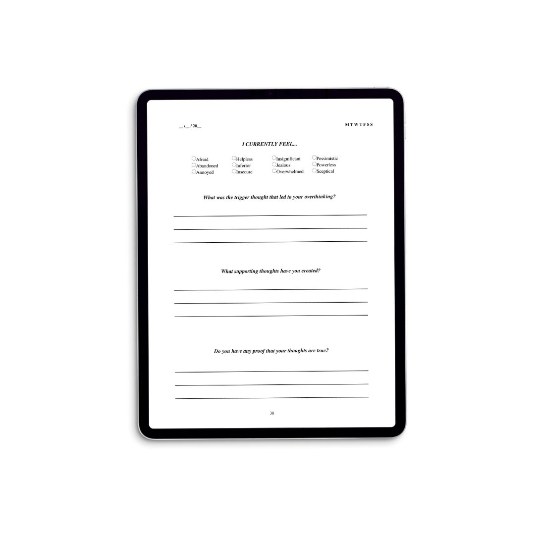The guided exercises in the main journal pages use repetition to help you rationalise your negative thoughts and relinquish control. This isn’t a daily journal. Instead, use it every time you begin to spiral into overthinking. Over time, you’ll notice fewer instances of overthinking and a happier you.