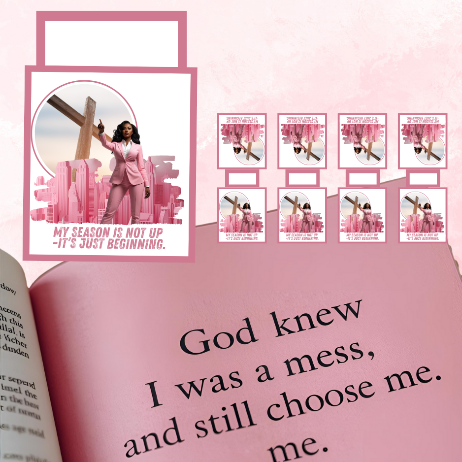Mark your place with style and inspiration! This printable tab collection features 16 beautifully designed tabs on one sheet, paired with the empowering affirmation: “My season is not up, it’s just beginning.”