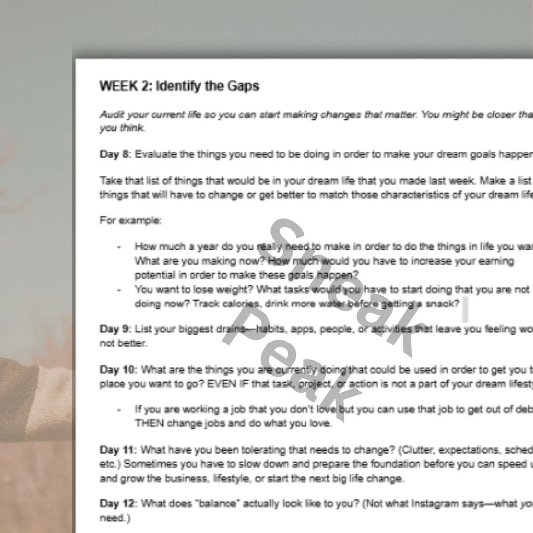 Its perfect for busy women and moms who desire a life beyond the daily grind. This 90-day action plan will take you from having no clue of what you really want in life, to taking daily action and achieving your dream life goals.