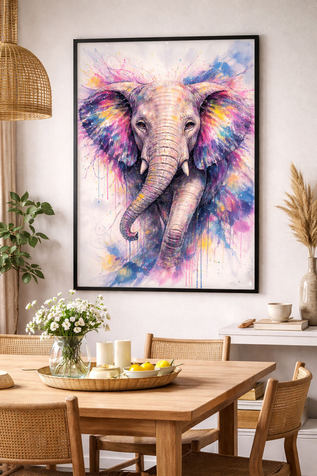 Make a bold artistic statement with this striking Rainbow Elephant Art Digital Download. Featuring a majestic elephant rendered in expressive, multicoloured brushstrokes, this artwork blends power, wisdom, and creativity into a vibrant contemporary design.