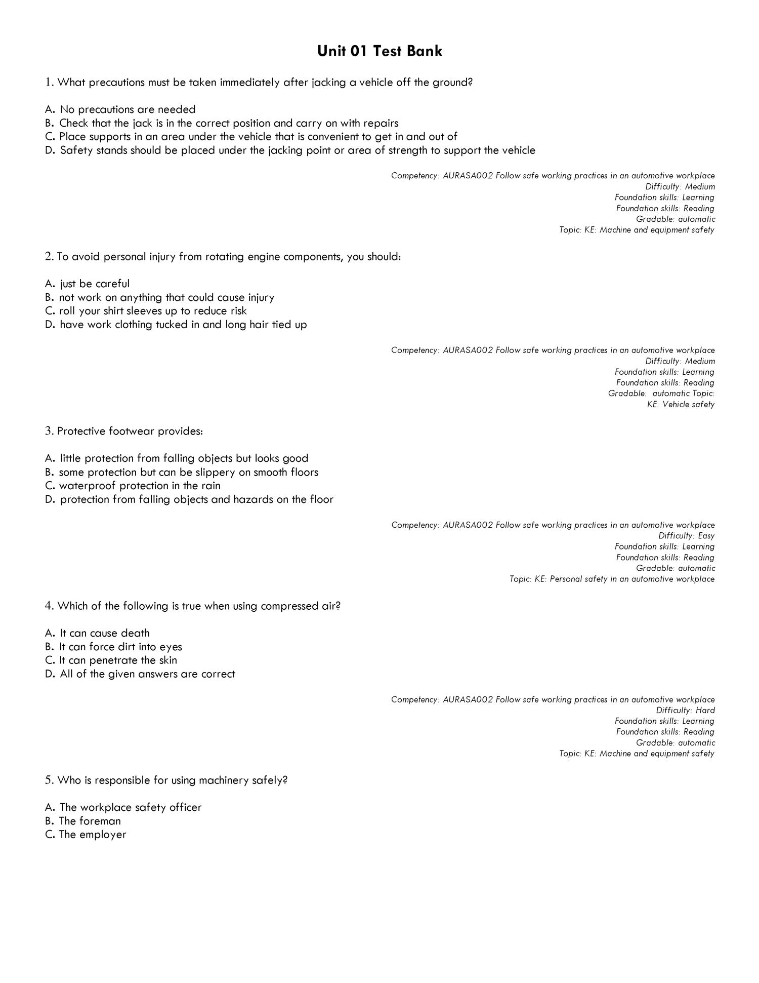 This comprehensive test bank provides students and instructors with a complete set of exam-style questions and solutions, fully aligned with the 10th Edition of Automotive Mechanics. It is the ultimate resource for mastering automotive principles and preparing for exams.